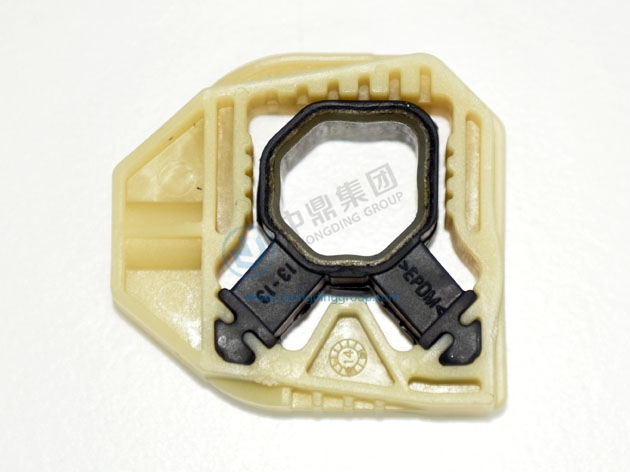 散熱器支架:用于汽車(chē)散熱器系統,起到支撐及固定減震降噪的作用,內襯PA66+GF30,材料EPDM